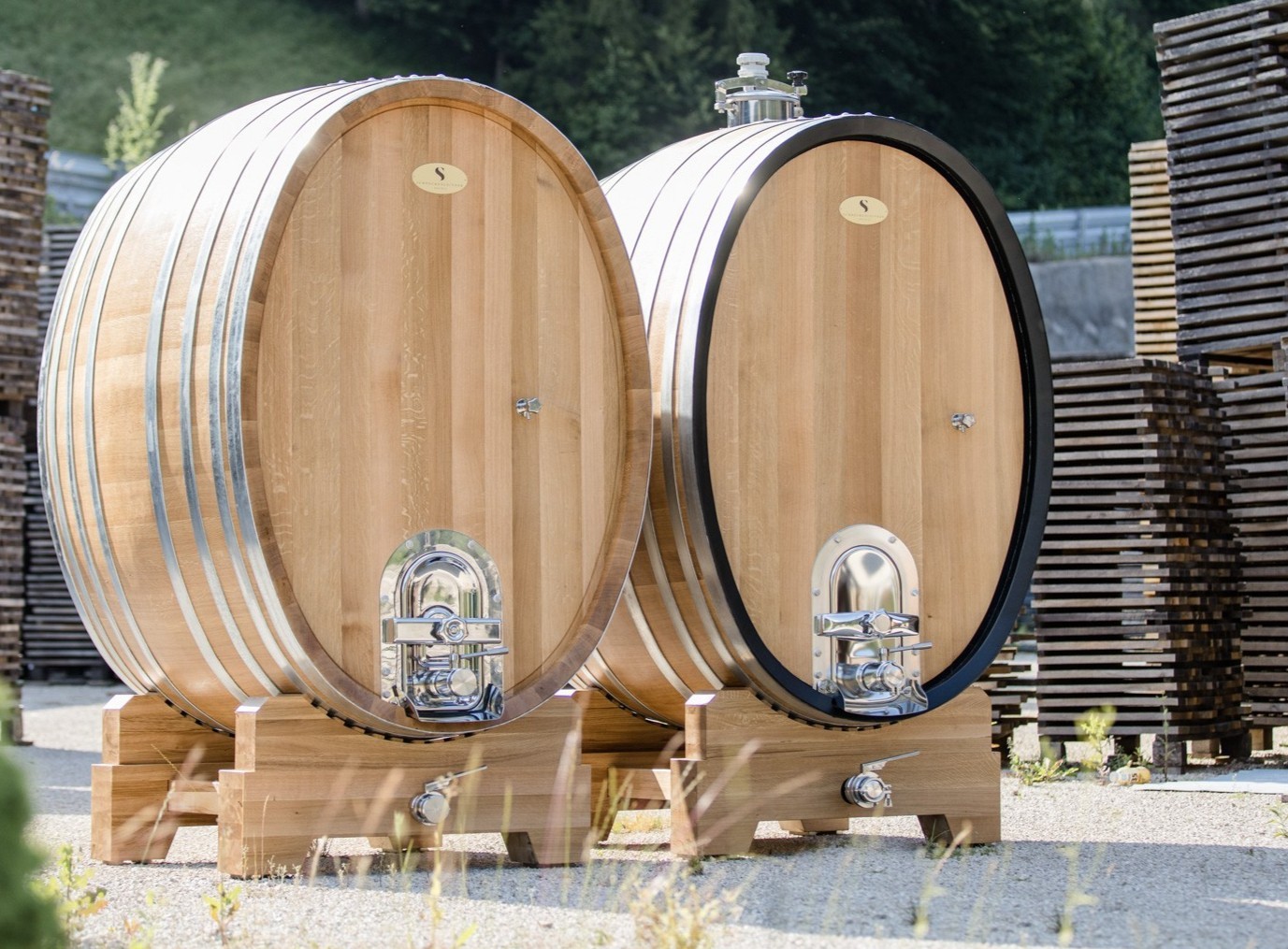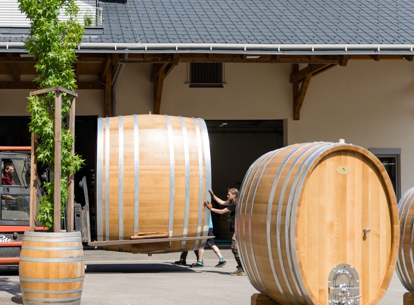 In unserer Fassbinderei entstehen in traditioneller Handarbeit hochwertige Lagerfässer – rund oder oval, in Größen von 600 bis über 10.000 Liter. Die Herstellung von Fässern dieser Dimension erfordert höchste Präzision, Erfahrung und handwerkliches Können.